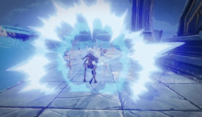 爆发状态叫电场爆发:持续烧神智,烧完再炸一次技能退状态!这期间,黎瑟和范围内敌人都提速,每秒劈一个敌人雷伤,还轮流挂正/负电荷!