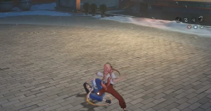 施展三次云步游踪触发极限闪避,伤害提升50%进入最强状态。此状态下向前跃步穿刺,命中翻身击飞目标,调整站位、拉近敌我距离游刃有余。连招得手动作行云流水,重创敌人。