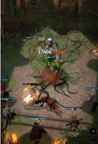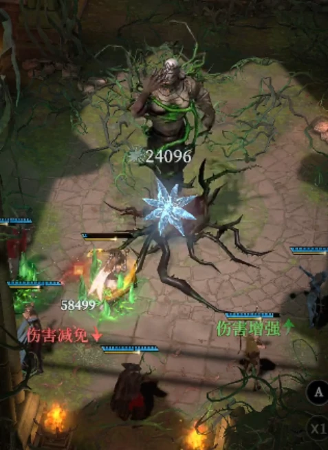 技能组合实现承伤、辅助双重突出表现。搭配天赋强化防御,首个天赋提供70%减伤,30级后选坚守路线增强低血量存活。