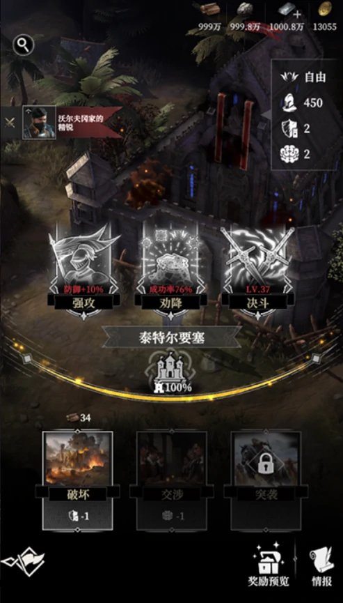 快速积累资源:优先攻上攻城战,决斗失败用金币交涉。连续三次突袭,单次劝降成功率80%,失败及时换策略。上方成功解锁下方,三次破坏加一次突袭,劝降成功率76%,看准时机行动。