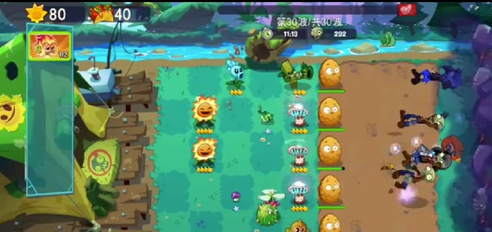 成功合成向日葵类植物,阳光产出大幅加快,天上掉落额外阳光,助你更快扩充战力。关卡推进,僵尸波数增多,类型更丰富,共30波,需抵御全部攻击才能获胜。
