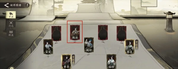 开启符节台步骤:进入副将图谱界面,点亮下方两排副将,激活属性加成;重点点亮中间红色品质武将韩浩;切换至中原地形,用韩浩替换夏侯惇,推进主线任务;部分关卡简单,用于引导熟悉功能并赠送新手资源。