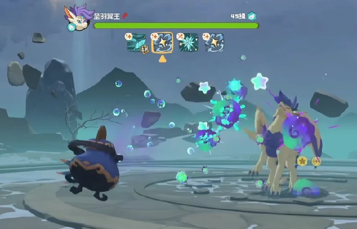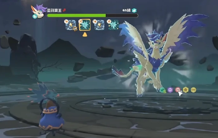再次打开魔法手册,找到翼王的试炼任务(每天可挑战三次)。翼王具备群体伤害和三回合免疫等技能,建议队伍配置主坦、治疗、输出各一名。翼王使用星云屏障时,立即使用破甲类技能击破,此时翼王进入虚弱状态,使用高级精灵球捕捉,成功率大幅提高。