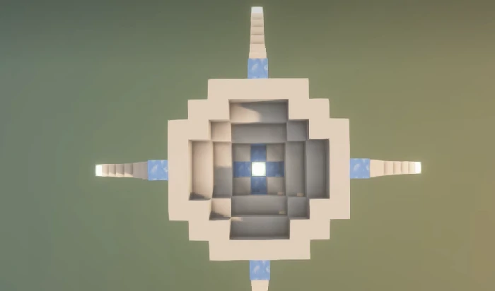 第二步,铺设空中平台。以楼梯顶端为中心,用地板块向四周延伸,形成完整空中平面。此平面与地基相连,结构合法。