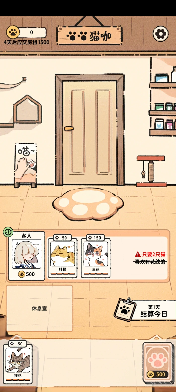 满足顾客需求获取更多猫币,尽量完成。