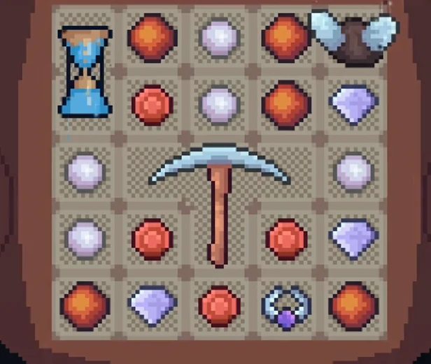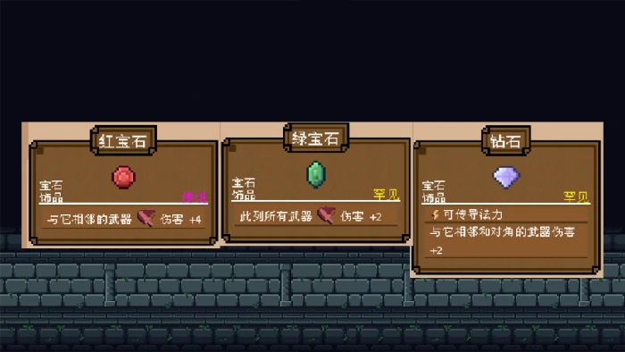 推进关卡收集各类宝石,合理规划背包布局,将宝石与十字镐相邻放置激活额外加成:单颗宝石提升基础伤害,多颗相邻宝石触发属性共鸣,叠加增益效果。该设计无增益上限,助力伤害无限成长。