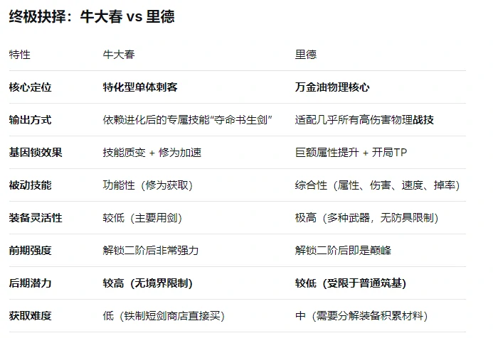大多数玩家若不追求大后期极限强度,选里德,体验畅快强力;追求完美毕业、看重终局实力,选牛大春更稳妥。