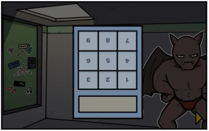 密码门启动后不知密码,请求蝙蝠协助,先用布盖住天窗遮挡强光。