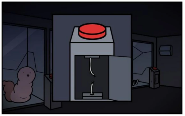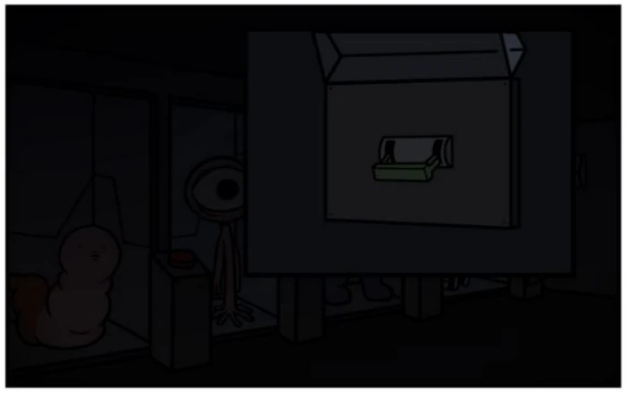 另三房间关外星生物:粉红虫、独眼怪、双头怪,按按钮互动,开独眼怪门被吞,触发结局16——好心没好报
