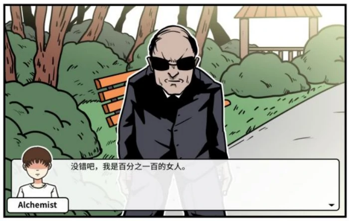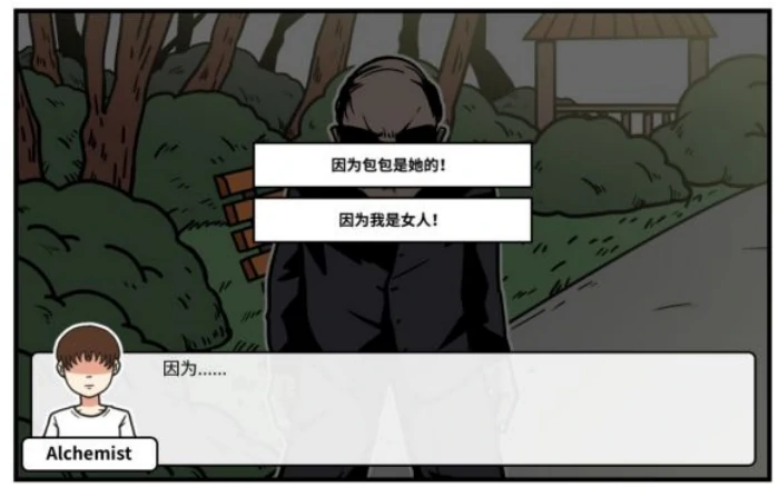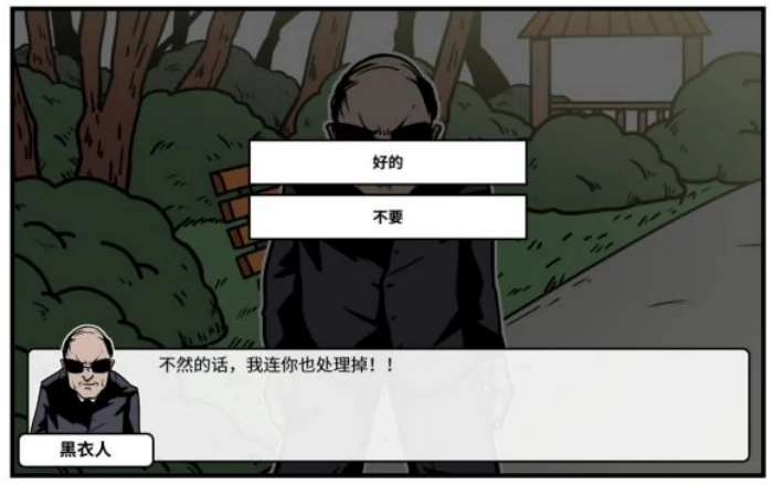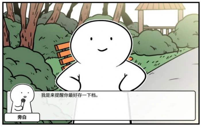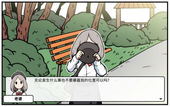 前往公园露宿,触发旁白存档提示,系统自动存档。偶遇老婆,协助躲避黑衣人追击。