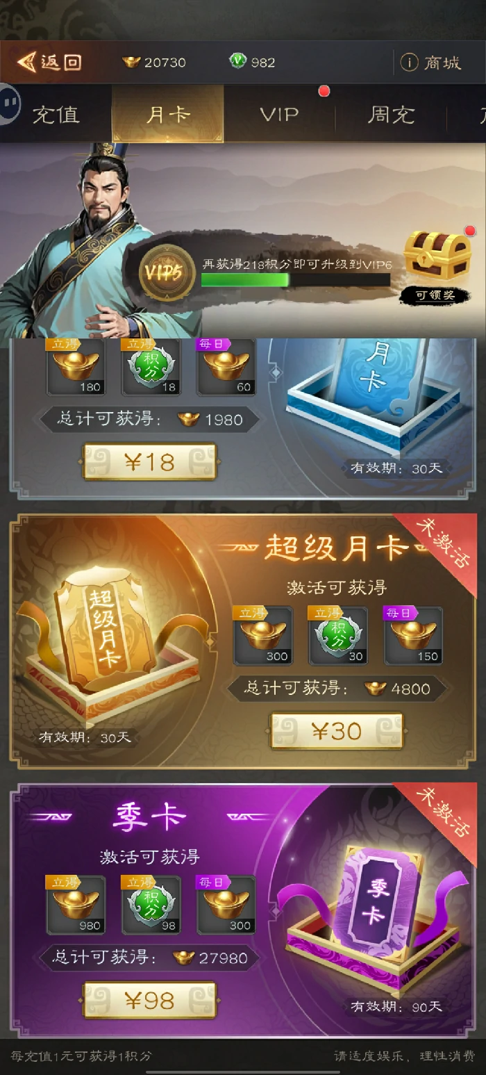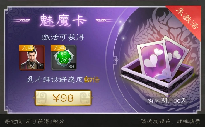 1.单日充值满30元激活当日十连红将特权,仅限当日,建议周日限定卡池开放时充值,性价比最高;