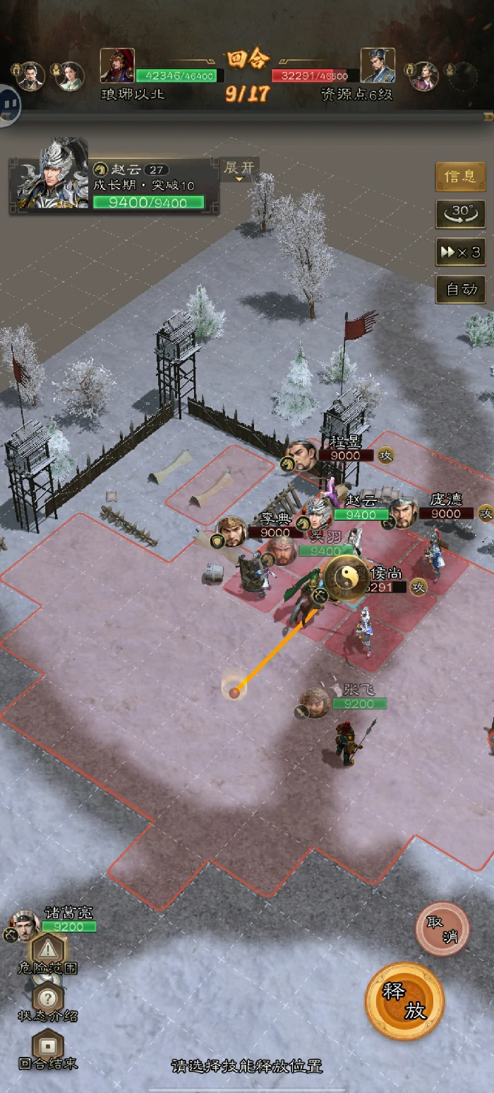 1. 开局赵云、关羽、张飞尽量靠近敌方密集区域