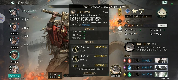 配合觉醒技能与三骑兵阵容,直接获30点武力加成,触发频率高,全程覆盖