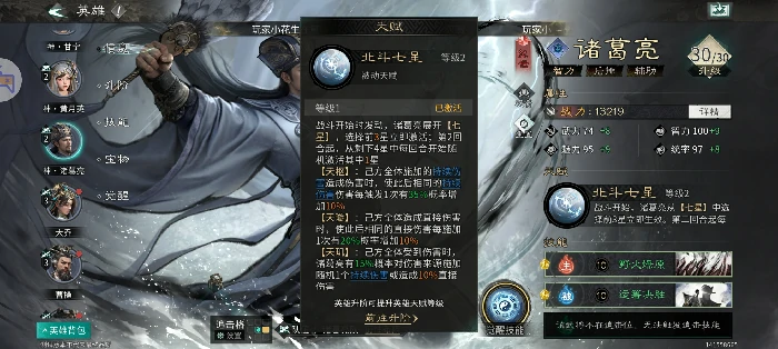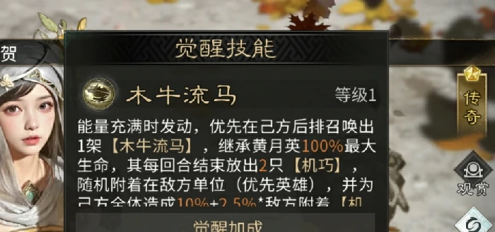 主要发挥辅助与属性补充作用,与黄月英觉醒技能联动提升机巧效果,可调整更优配置