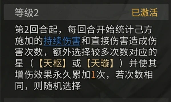 升级后技能根据持续与直接伤害占比提供不同增益,阵容含较多持续伤害,机制未完全测试,可优化技能配置