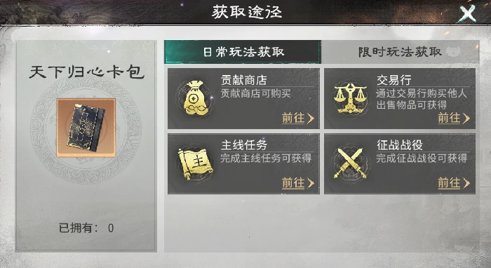 以下是官方已公布卡包获取方式,聚焦未明面提示渠道。
