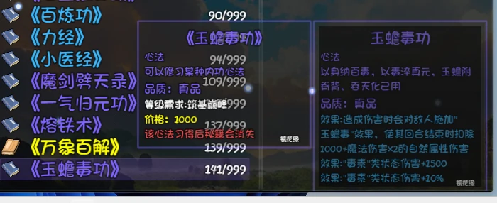 战术建议:交战时避免队友装备阎王帖等高伤普攻武器,防止被控后造成损失。幻音宝盒增益多段法术攻击,建议反复刷取。玉蟾毒功在心法栏有空余时,为法系角色提供额外输出。