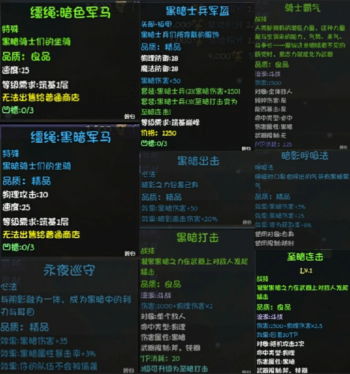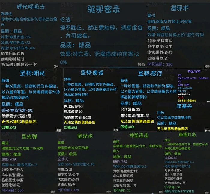 转黑暗骑士团准备:≥5本驱邪密录(刷鬼用)、2本圣契、兑换全能光环、备4本神辉诀。