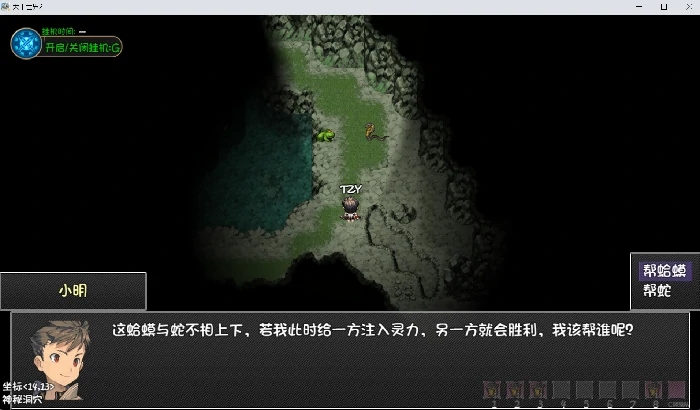 进洞穴,调查雕像右侧触发宝物,误触左侧无反应,可能卡关。