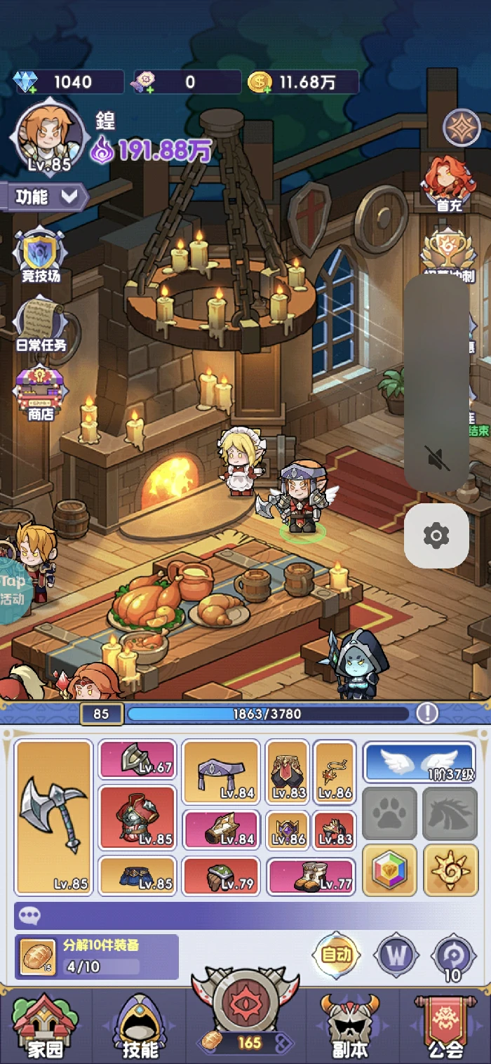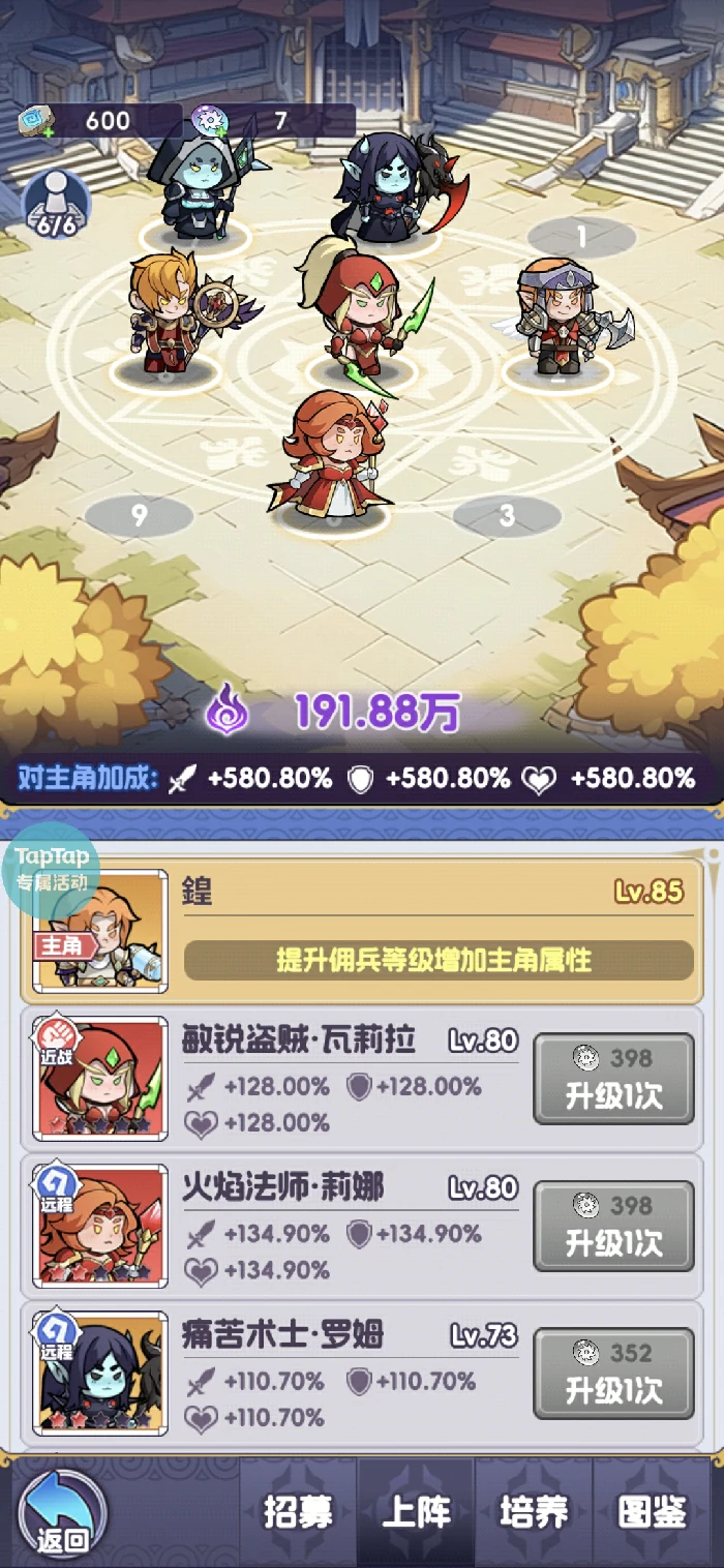 游戏初期,缺拍拍(S+熊坦)和大奶(S+牧师治疗),零氪推图吃力。主角担当前排防御,其余位置用系统赠英雄。