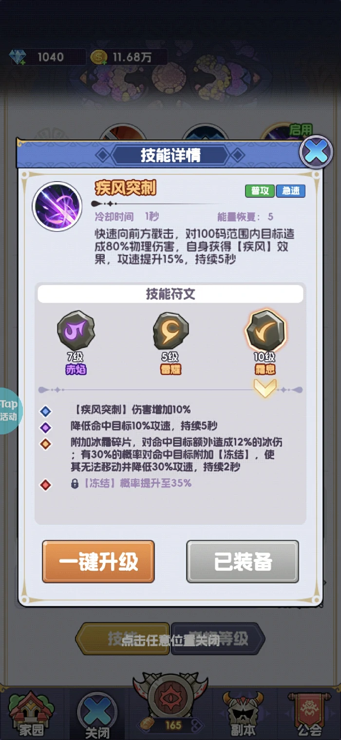 符文选抗伤与自我回复组合,实现越战力推图,避免卡关影响体验。