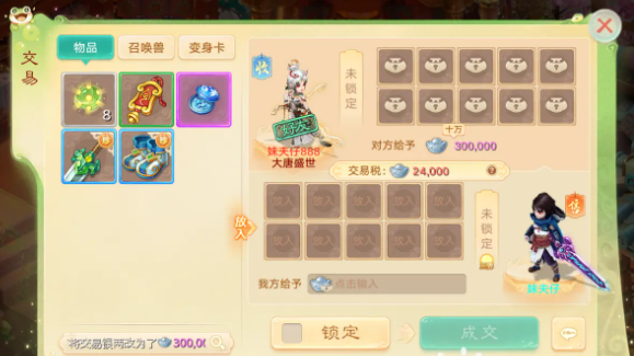 比如你先放了武器,那你就是卖家,对方只能放银两或确认购买,没法同时跟你一起放装备,避免身份混乱。
