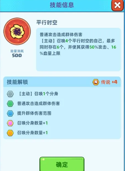他的主动技能是平行时空,一旦释放的时候能够召唤分身来进行战斗,他一次性可以召唤4个分身。