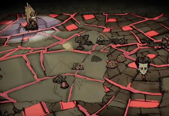 铥矿生成于地下世界远古区域。玩家先进入地下洞穴,探索地图找到远古遗迹。该区域有远古雕像、遗物及可破坏瓦罐,用镐类工具敲碎或借怪物撞击,可能掉落铥矿或铥矿碎片。远古区域精神值san值下降快,光线暗,提前备好海象帽、太妃糖等恢复san值道具,携带充足照明设备。击败远古守卫者,其掉落的宝箱含铥矿,该Boss可刷新,重复挑战能稳定获取资源。