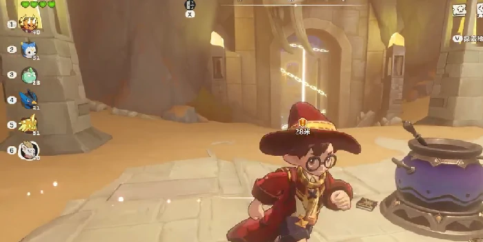 开启地宫任务:从紫色大锅旁出发,炼制三块矿石金块激活门禁。击碎左侧石墙障碍,拾取小星星,击破第二道墙触发宝箱,搜集旧游戏币。折返紫锅右侧,打破石墙开辟新路线。