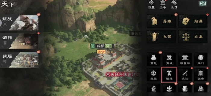 策略游戏三国天下归心宝物系统:提升武将战力,增加战术选择。解锁条件:随主线进度开放,与国家建筑锻造台等级关联,通常第二天完成建造任务解锁。锻造台升级后,可制造的宝物类型和品质增多。