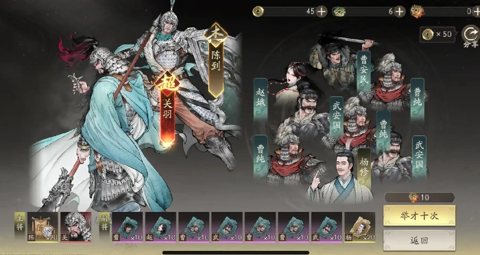 初期别过度抽取高稀有度武将。基础武将合理搭配也能高效推进。武将价值体现在整体战术构建,不由稀有度决定。灵活运用谋略与技能系统,常规武将可发挥显著作用。部分限定武将未来会进普通池,日常抽取即可获得,不用急。