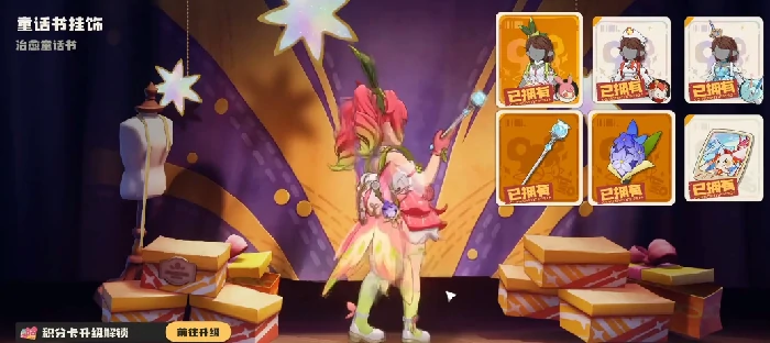 可兑三套主题时装:花仙子、独角兽、小护士系列,每套含发型、瞳色、背包配件等部件;小护士套装带魔法棒,释放技能触发星光蝴蝶特效,建议整套购入提升性价比。