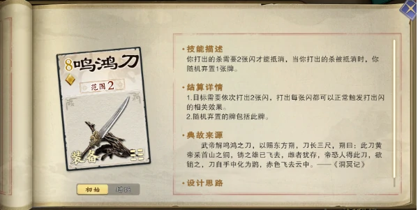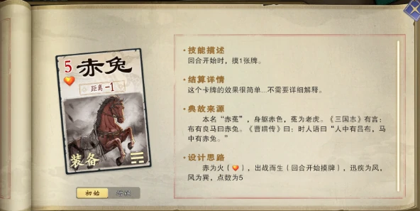 防具选八卦盾,抵消伤害、回复体力,减少受伤、保障残血生存。武器用诸葛连弩或鸣鸿刀,鸣鸿刀消耗对方闪卡降受击概率,诸葛连弩打高爆发伤害不给对方留机会。马匹搭配灵活,配赤兔缩短攻击距离实现快速突进。