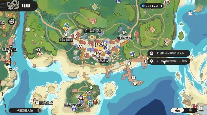 可可果广场有互动任务,如为小精灵撑伞。与NPC对话,完成操作解锁成就拿奖励。部分场景任务需携带特定精灵,敲击鼓类机关挑战,开启宝箱获道具。