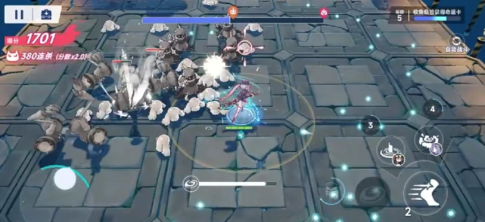 普通攻击用巨斧发动五段理性裁剪;狂化状态切换高速连斩,水属性伤害提升。主动技能冰锋舞蓄力延长持续时间,每0.3秒对周围敌人造成水属性伤害,激活水系印记。