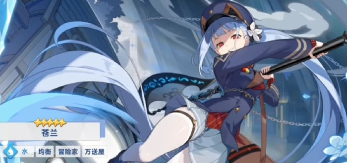 星塔旅人水属性角色苍兰,银白长发配猫耳帽,持信封包。性格天真,常用猜拳决策。