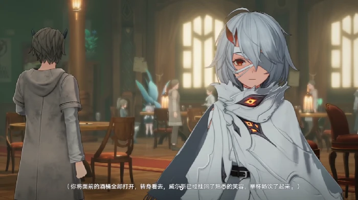 接近酒桶长按完成解谜,触发威尔斯饮酒倾诉剧情。