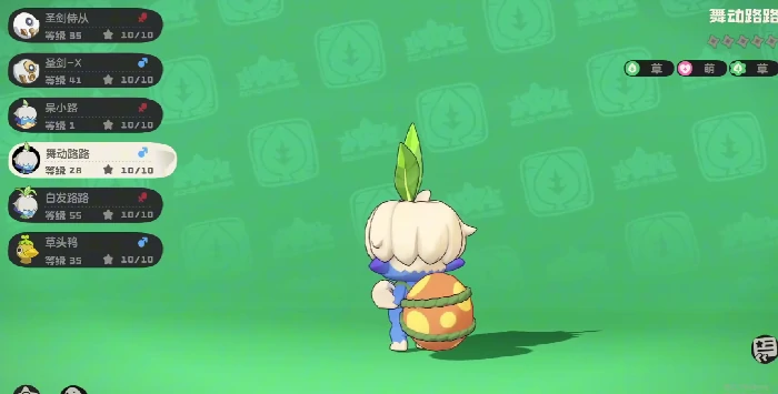 舞动路路属草系,初始形态呆小路,32级进化,40级进化为白发路路。