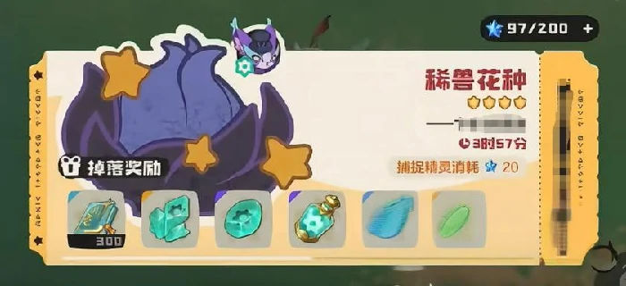挑战稀兽花种:切换线路/刷新地图遇敌,组队挑战提升效率,击败触发闪光精灵。不同花种对应不同精灵,消耗20体力/次,合理规划体力。