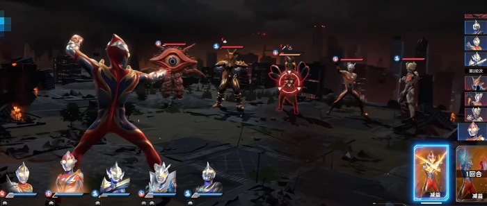 手动控制移动、闪避、防御与技能释放,精准把握时机调整站位。考虑属性克制、角色定位与连携技能触发条件构建阵容,可编入芝顿、巴尔坦星人等经典怪兽,打造奥特曼+怪兽混编阵容。