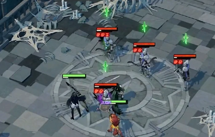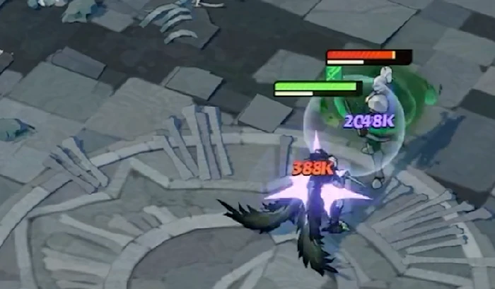 技能利爪穿刺攻击时触发两次伤害,插入和拔出各一次,同时留撕裂伤口,让目标持续流血。蚀命在战斗开始释放,翼飞跃到敌方阵容后方,飞行中无敌,给所有敌人附加蚀命羽咒效果。
