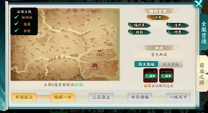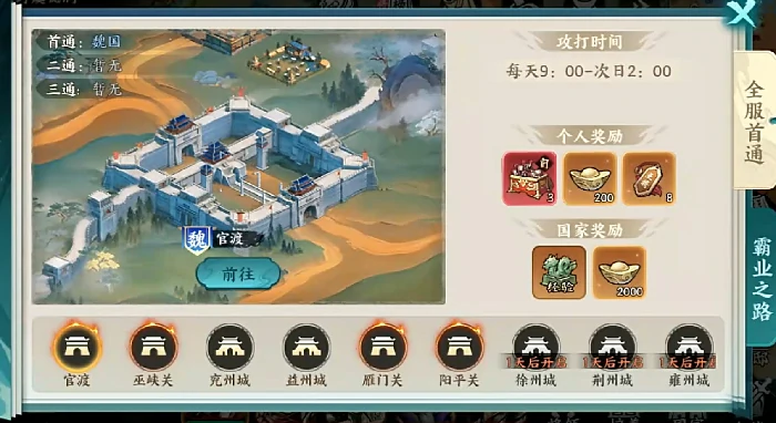 攻城玩法是核心,第二天开放。参与攻打他国城池据点,扩大控制范围。无论攻防,参与就获大量战功,可兑稀有道具和实用物资。即便战力有限,也要尽量参与,积累资源稳赚。日常任务、主线剧情和各类副本是前期资源主来源,每日必做。主公等级达50级,且熟悉游戏机制,即成功度过开荒期。