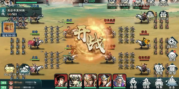 搭配武将阵容,优先选同一势力武将组合。魏国善削弱敌人攻击,适合持久战;蜀国常用牺牲机制换高爆发或强控,易实现以一换一;吴国侧重叠加持续伤害,中后期发力;群雄武将适应性强、生存恢复能力佳。选定主力阵营集中培养,保持队伍势力统一,避免混搭缺属性加成。