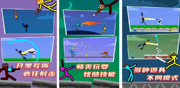 横版格斗手游,操控不同风格火柴人对战。虚拟摇杆+按键操作,快速上手。对战中升级武器、更换皮肤、使用道具提升战力。融合射击玩法,节奏紧凑,体验刺激。