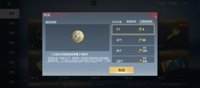 CF手游王者轮回夺宝,消耗轮回币抽奖赢王者武器、角色皮肤及各类游戏道具。