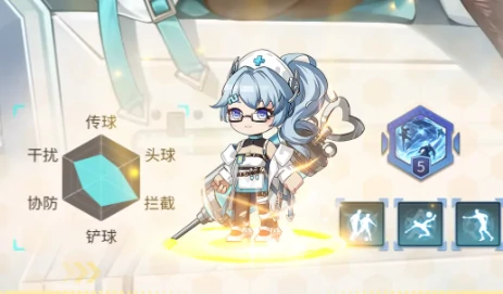 南丁格尔:防守核心兼全能角色。战斗开始全属性自动提5%。防守状态下释放核心技能“幻影拦截”,在持球对手身边生成三道幻影干扰;拦截成功即刻反击,全队攻击力升10%。三人同时上场激活额外羁绊,全面强化传球与干扰能力。