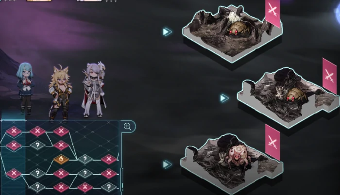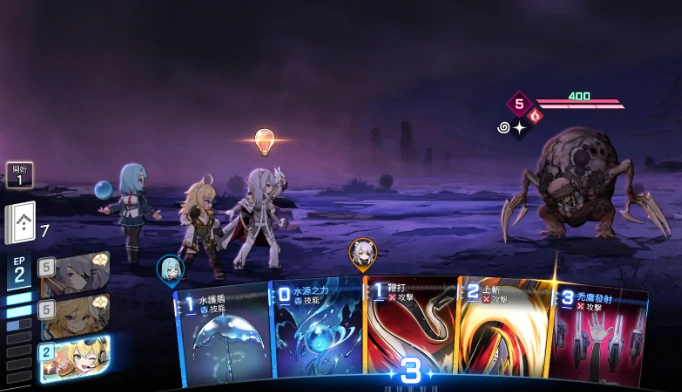 每回合AP默认3点,回合结束重置;EP靠攻击/击败敌人积累,避免溢出。敌人行动依当前行动点数实时发动,出手前先看弱点标识,用对应属性卡牌攻击。打空敌人韧性值,额外得1点AP并延迟其行动。压力值满50点队伍崩溃,需减少卡牌移除与受击次数控压力。