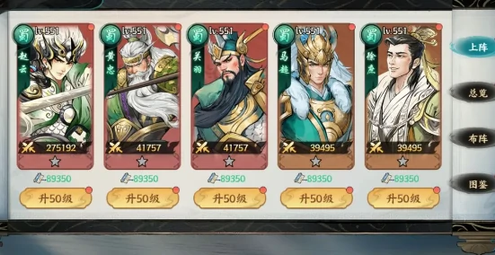 用无损继承机制,前期培养不浪费资源。把握节奏,推图顺畅。蜀国阵容靠敌方阵亡激活被动,提升输出和功能。兼容强,可独立可混搭。推荐赵云、黄忠、关羽、马超、徐庶,组阵亡联动控场输出体系。