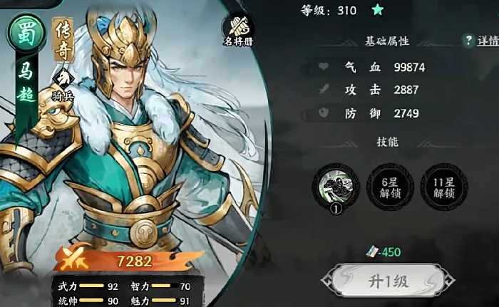 五位橙色武将基础数值略低红将,但合理搭配阵容,实战作用不输红将,可成队伍核心战力。