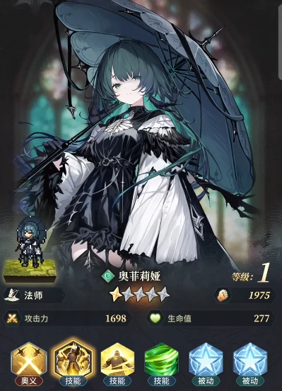 SSR级法师奥菲莉娅,五星火系输出。生命值低,爆发伤害高。造成火属性伤害,提升全队奥义输出,PVE和PVP表现优秀。